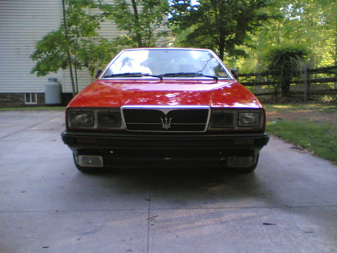 2 May 2006 - A 1985 Biturbo E finds a new home. I acquired this beautiful machine on May 2, 2006. It sat in a garage for more than 12 years after its only other owner quit driving it. The interior seems to be immaculate with little wear and leather in great condition. The exterior also seems to be in great condition with a few minor dings and one rust spot at the front driver side corner. The engine condition is unknown at this point, but the transmission seems smooth through the pattern and the rolling stock seems fine. I will post more as I go, but the progress may be slow as parts cost dollars. The project is underway. I feel much better about beginning this journey because of the help I have already received from a Yahoo Group dedicated to the survival of these Italian Stallions: BiturboZentrum. Since we finally got the car to the house around one in the morning, I didn't have a chance to get any good pics, but here are a few that I took on my way out this morning with my phone. Click an image below to enlarge | |||||||